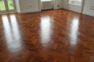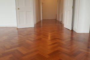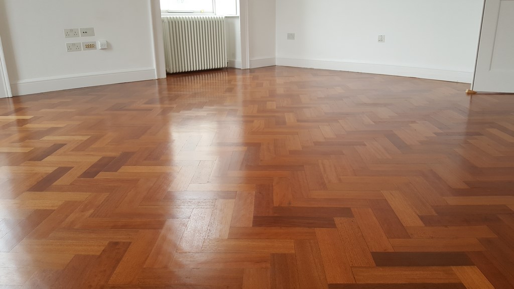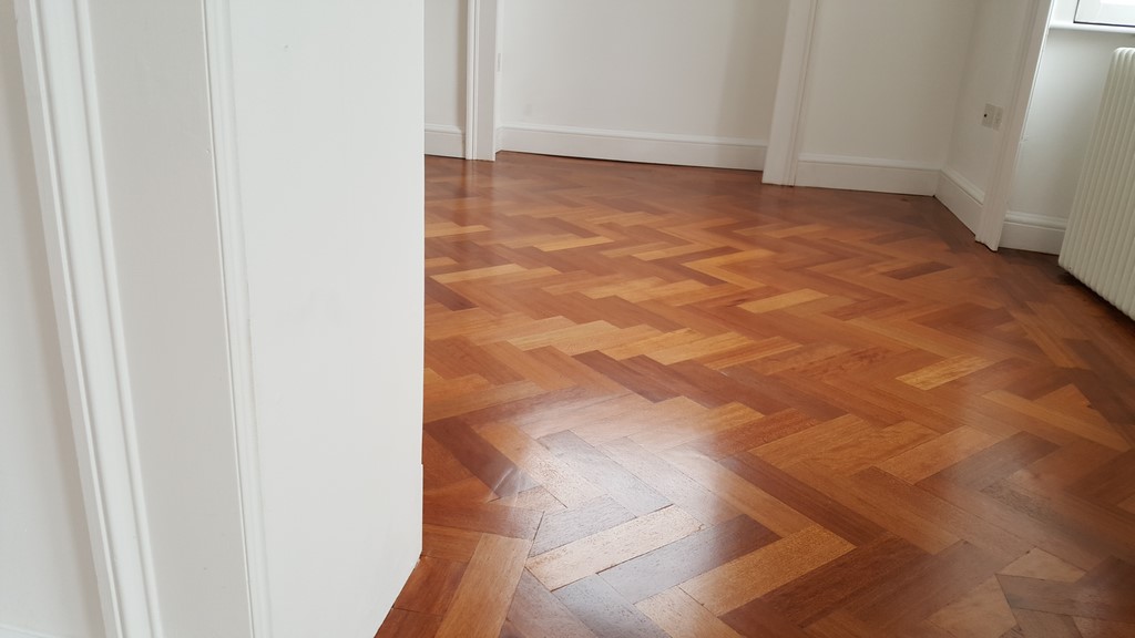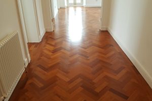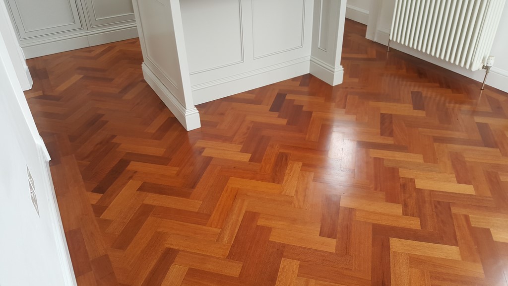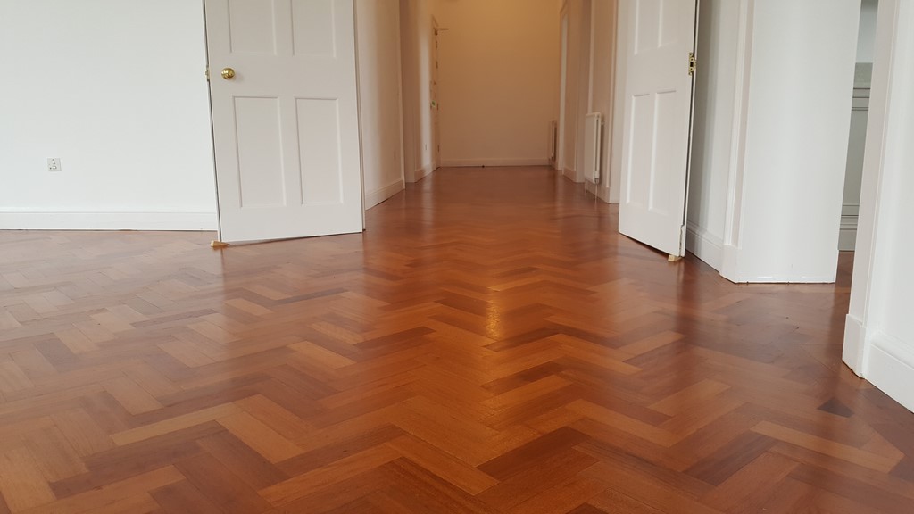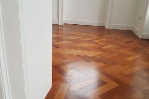 Reclaimed Mahogany Parquet solid hardwood finished flooring with proven provenance circa 1850 installed in a beautiful setting of a renovated historic building circa 1800’s.