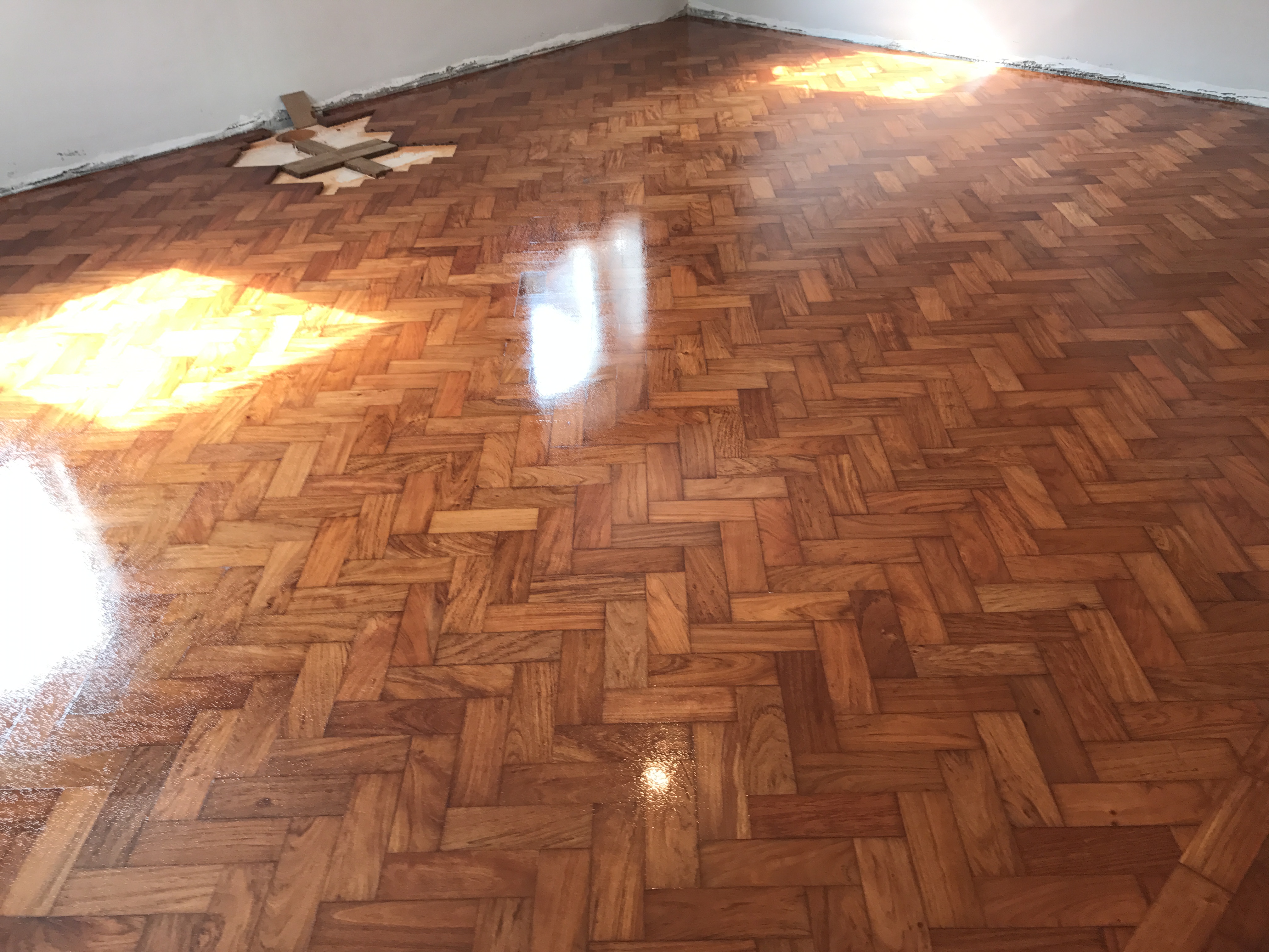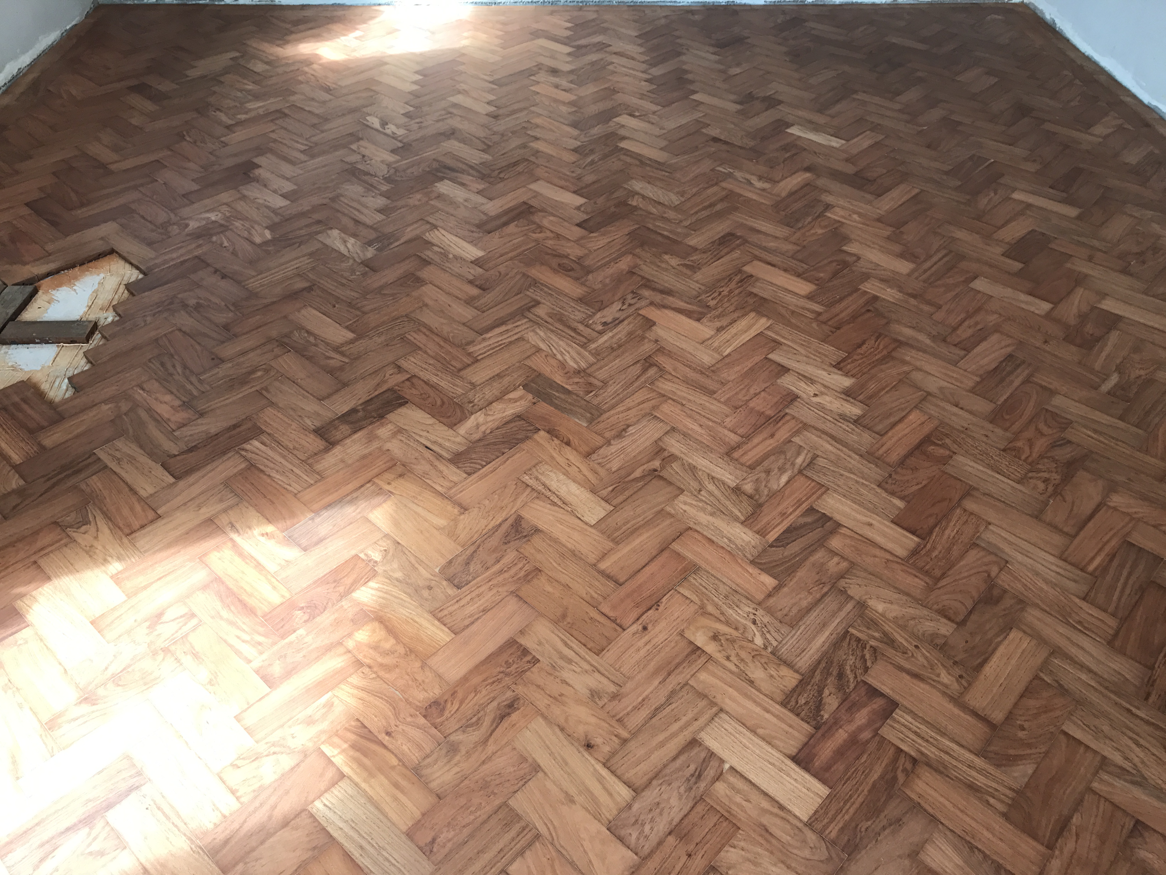 This Rhodesian Solid Teak Oiled Parquet (woodblock) hardwood flooring project is on going. Here are some of the pictures of the ground floor where 80% of the floor area is been covered on Reclaimed Rhodesian Teak.